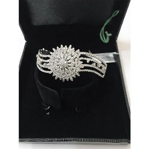 Premium Quality Women's IGI Certified Diamonds Luxury Digital Quartz Movement Crystal Watch Bracelet Silver Band
