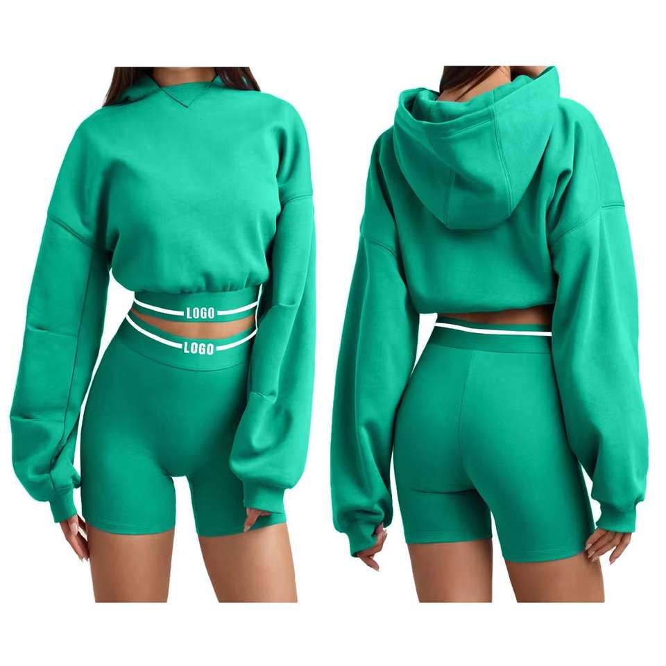 Premium Quality Women's Sets Crop Top Hoodie And Short Leggings Ladies Sweat Suit Two Piece Tracksuit For Women