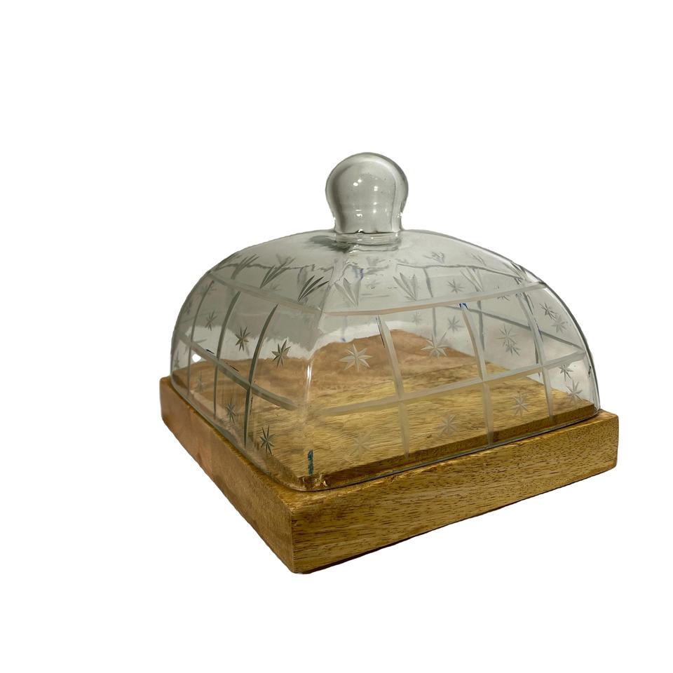 Premium Quality Wooden Cake Stand Wedding Party Birthday Dessert Display Tray with Glass Dome Wood Butter Plate Cake Dome