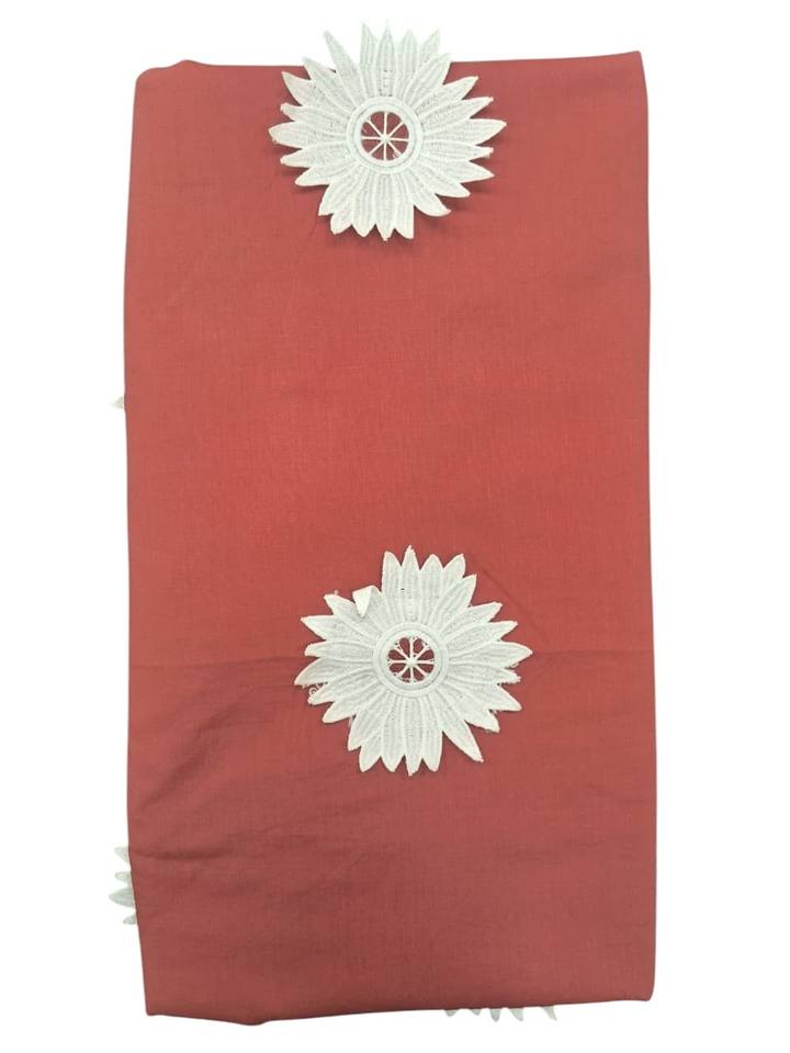 Premium Quality Printed Woven Coral Pink Cotton Applique/3D Fabric Breathable Lightweight Women & Girls Dress Making Material
