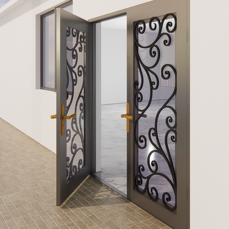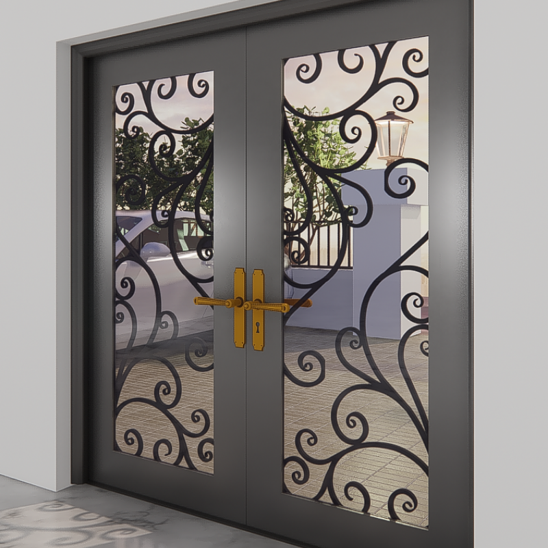 Premium Quality Wrought Iron Door for House Exterior and Interior Use with Smart Lock Sliding Door and Front Entry Security