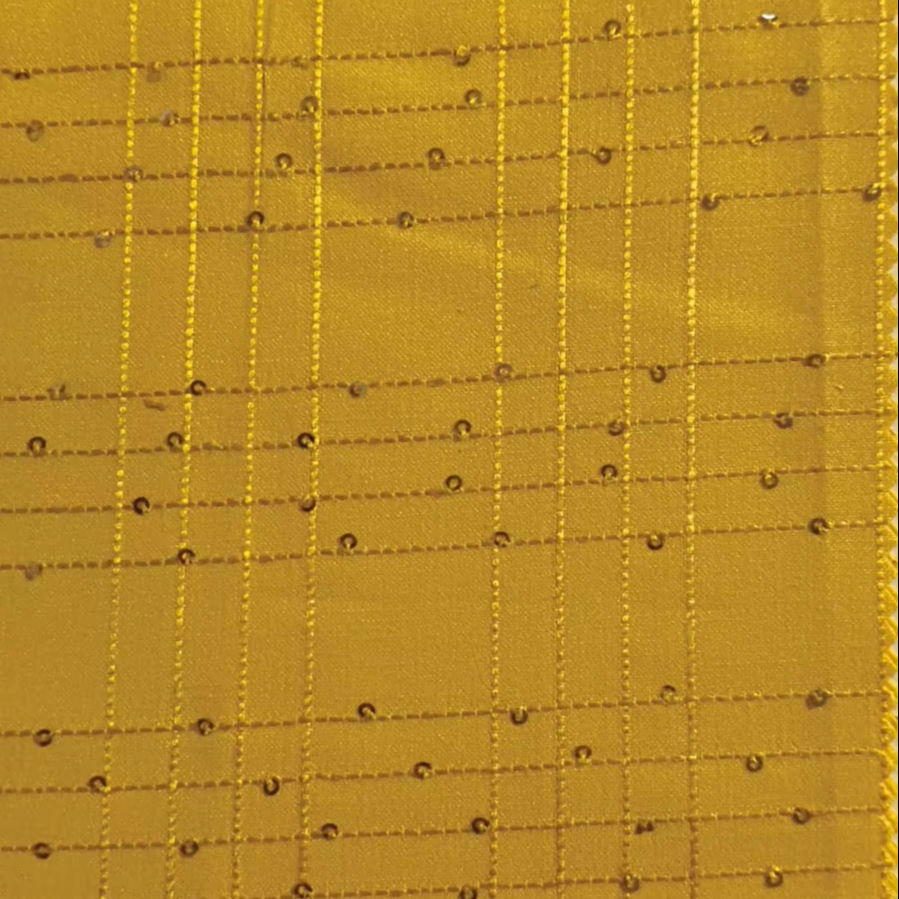 Premium Quality Yellow Grid Sequin Fabric Heavyweight Knitted Magic Shine Embellished Detailing Plain Dresses Shirts for Girls