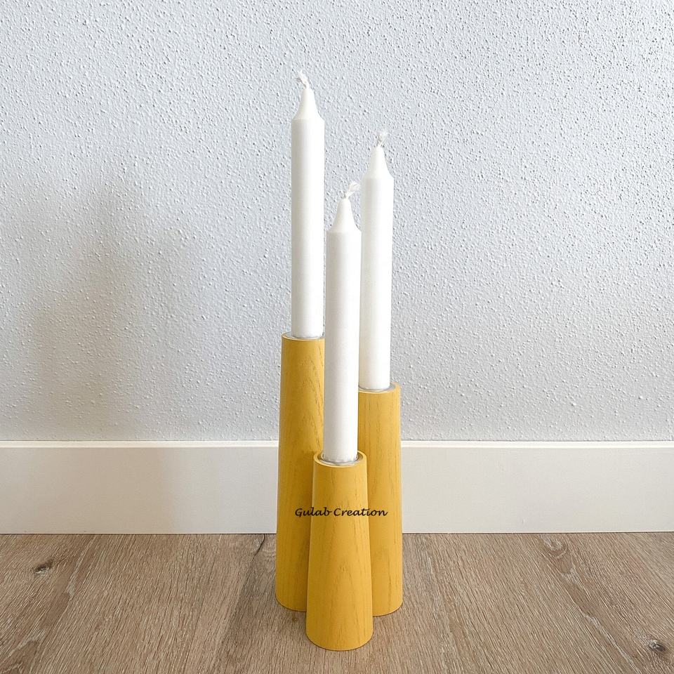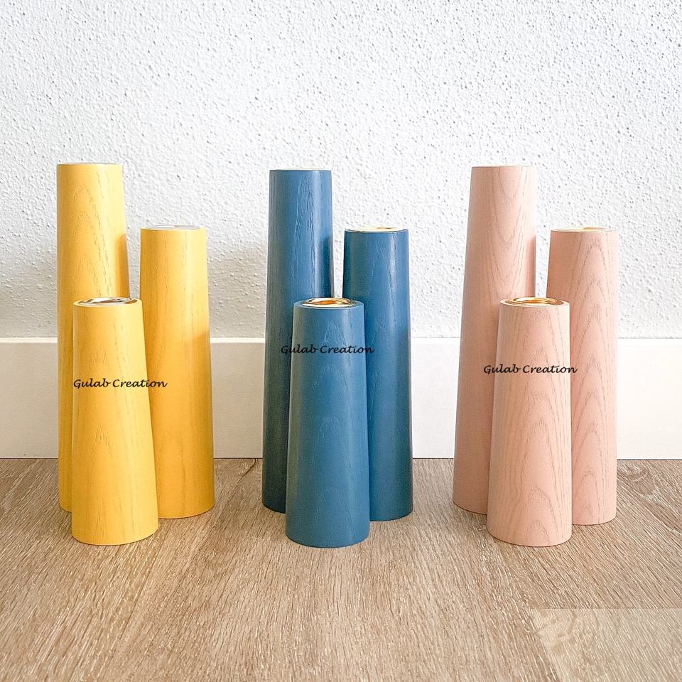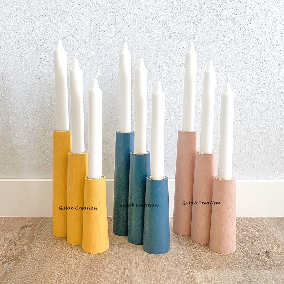 Colorful Pine Wood Handmade Taper Candle Holders Set Eco-Friendly Boho Rustic Modern Home Decor