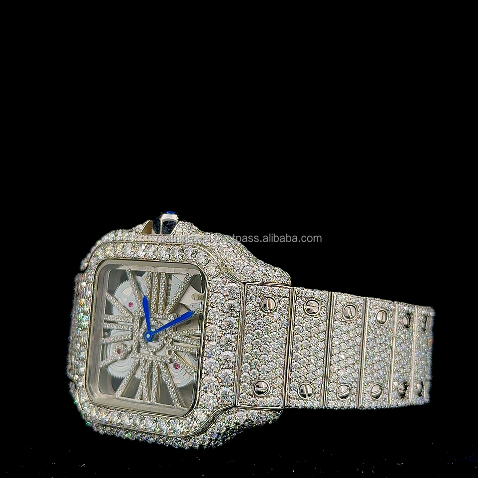 Premium Quality hand crafted Moissanite studded Stainless Steel Watch full Iced out Moissanite watch Quartz Movement