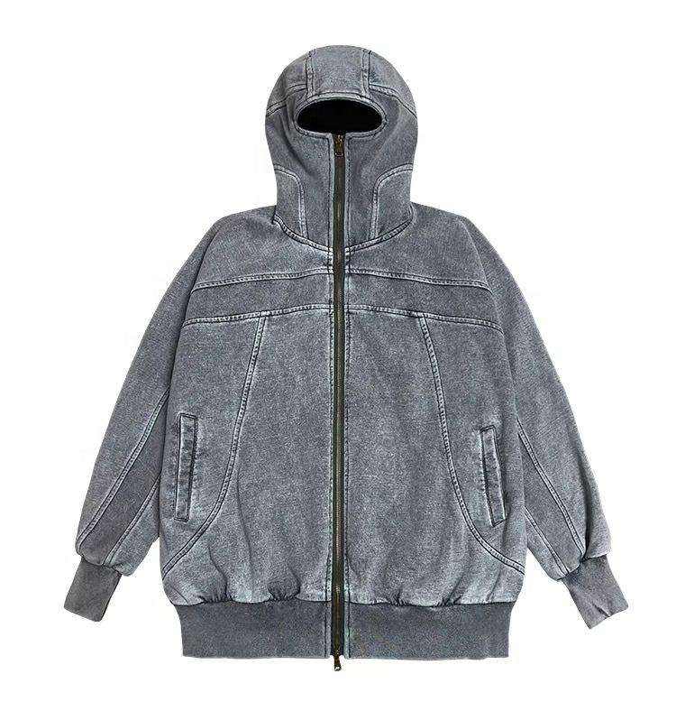 Premium Quality 100% Cotton Winter Hoodie Wholesale Drop-Shoulder Acid Washed Digital Printing Fleece Retro Hoodies for Men