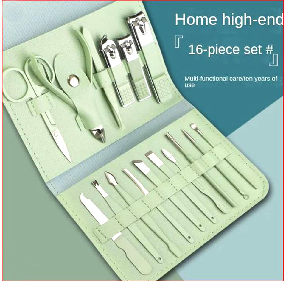 Premium Quality Manicure & Pedicure Set With Leather Pouch Scissors Grooming Kit Cuticle Utility Tools Nail Clipper Manicure Set