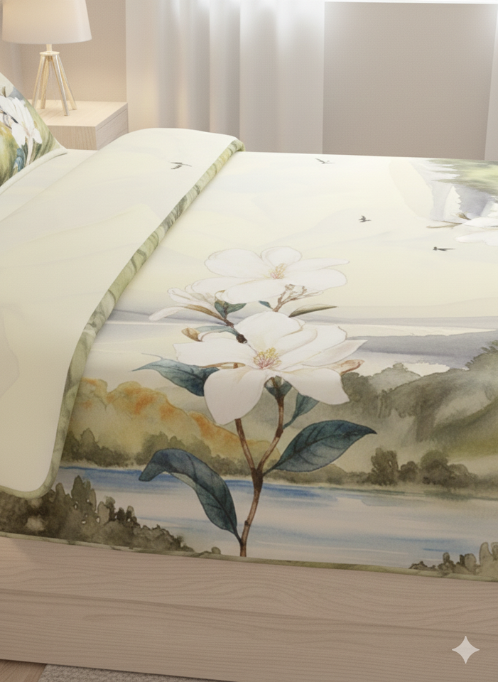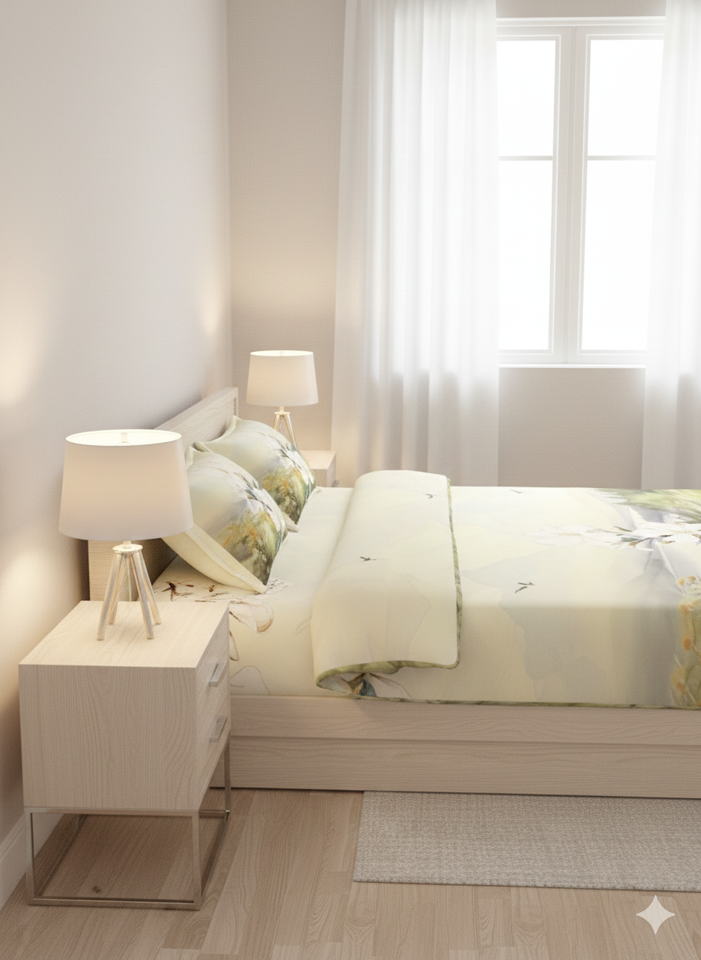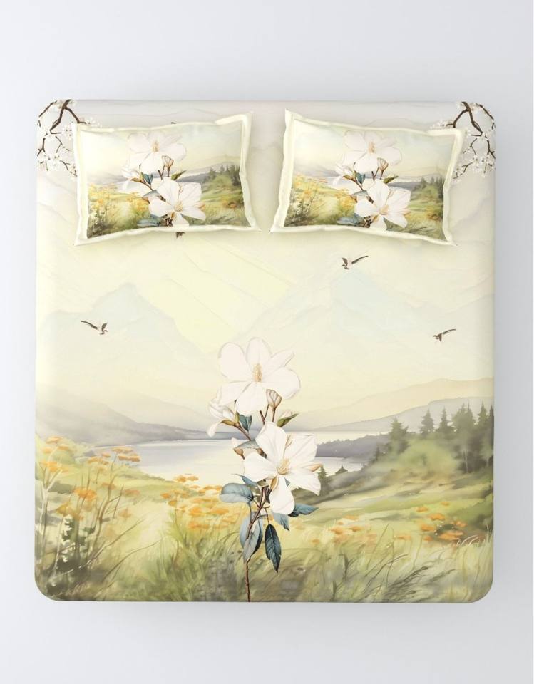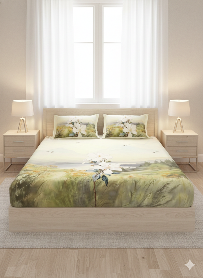 Premium Queen Printed Fitted Sheet Set 3-Piece Smooth 100% Cotton Folded Eco-Friendly 600TC Anti-Wrinkle Fade-Resistant