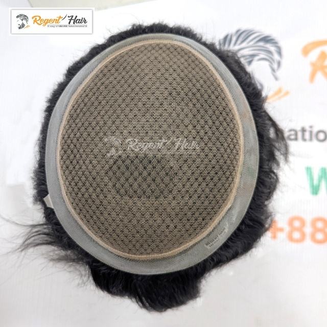 High Quality Men's Wig WFX03H 100% Natural Black Human Hair Toupee with Lace Base Urban Style Rim Hair