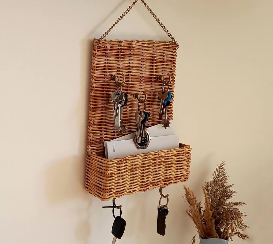 Premium Rattan Wall Key Holder Perfect For Farmhouse Decor Stylish Entryway Key Storage Rack Natural Handmade Look From India