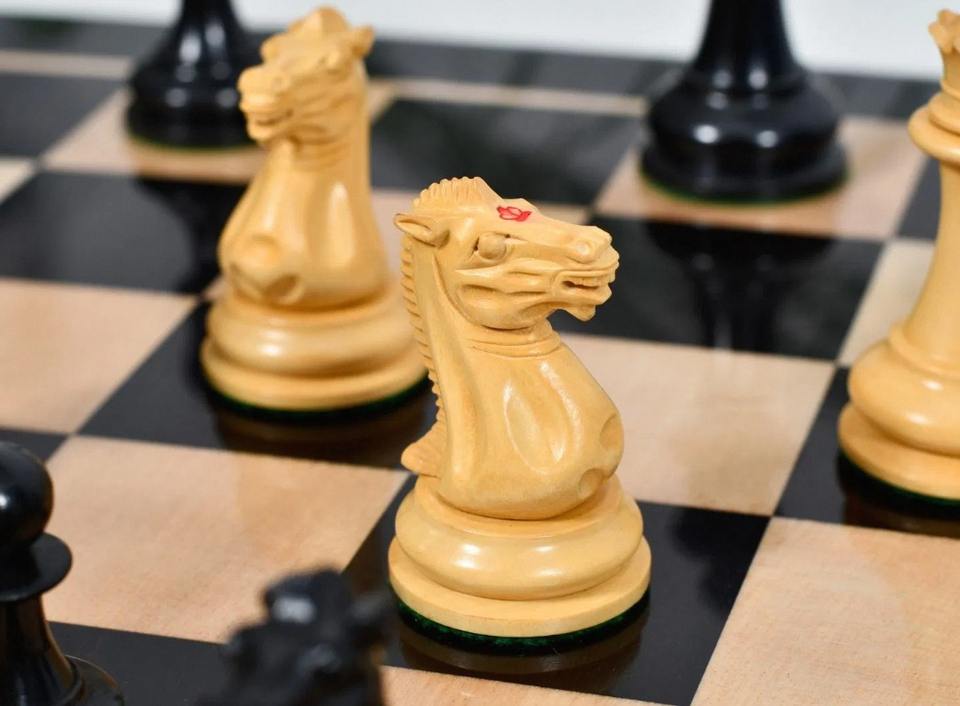 Premium Reproduced 1849 Staunton Chess Pieces Heavy Wooden Ebony And Boxwood with King Side Stamp 3.75 King At Cheap Price
