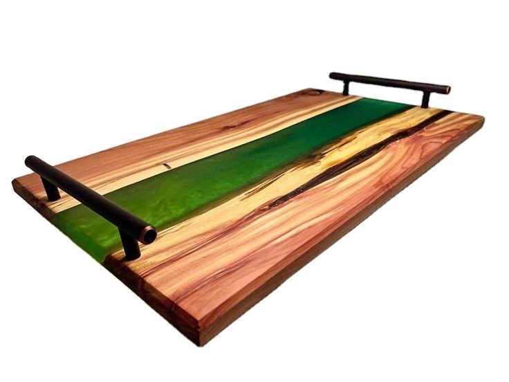 Premium Resin & Acacia Wood Serving Tray with Stylish Metal Handles for Weddings Food Parties Dining Table Serving