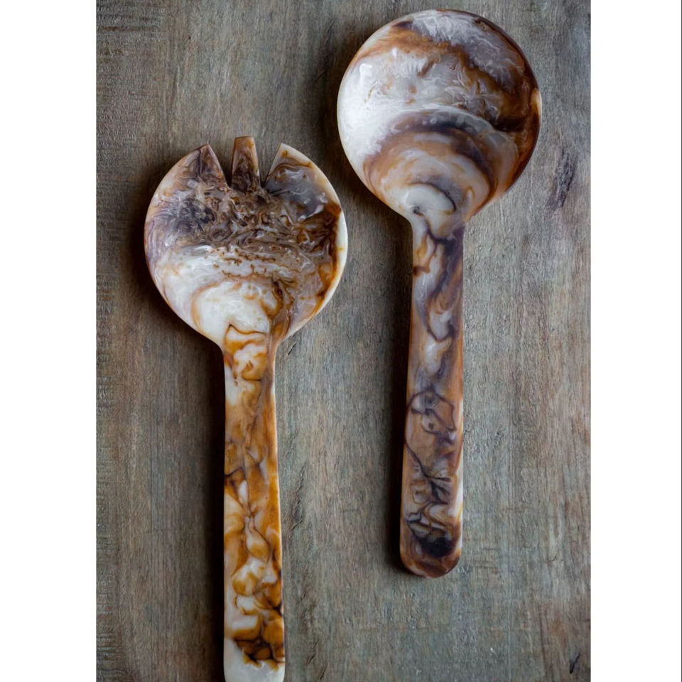 Premium Resin Eco-Friendly Salad Serving Spoon and Fork with Long Handle Modern Design for Party Use
