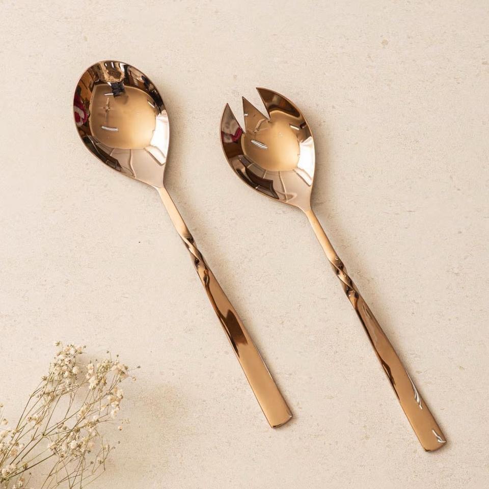 Premium Rose Gold Stainless Steel Salad Server Set, Metal Serving Spoon & Fork for Dining Table, Hotels, Restaurants & Events