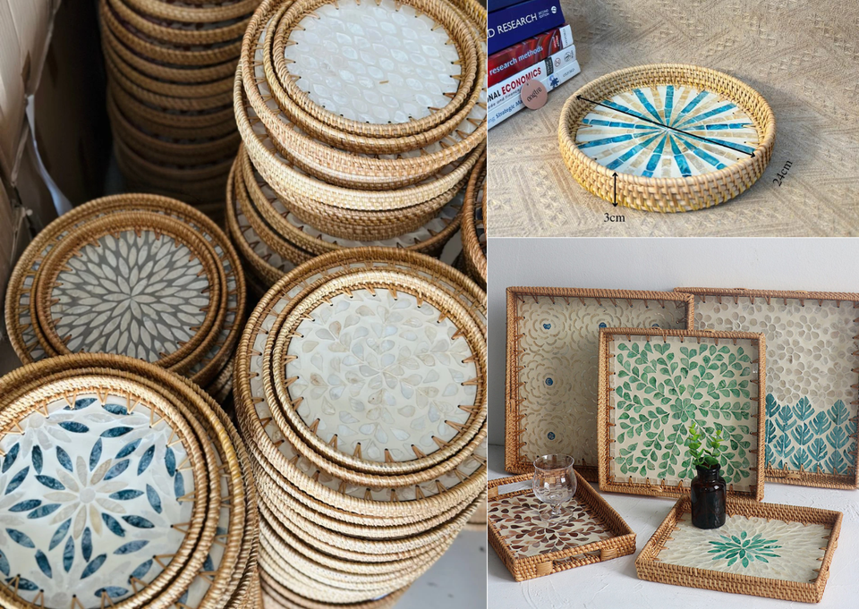 Premium Round Rattan Tray With Mother Of Pearl Inlay Multi Purpose Serving And Home Decor 32cm Vietnam