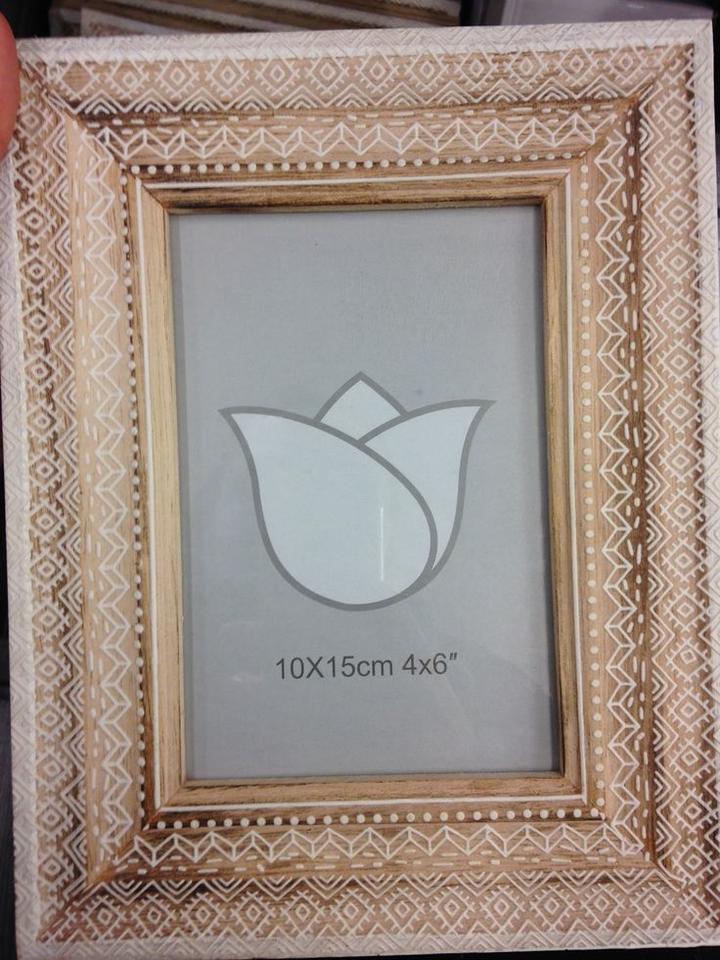 Premium Rustic Vintage Style Wooden Photo Frame with Decorative Hand Painted White Floral Pattern for Vintage Tabletop Decor