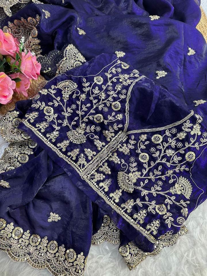 Premium Satin Silk Saree With Detailed Sequin Work Jari Dori Embroidery And Cutwork Border For Festive And Traditional Functions