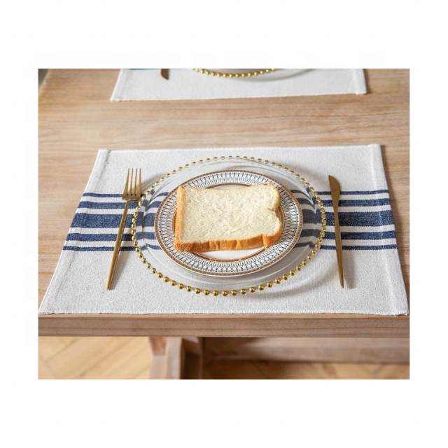 Premium Satin-Weave Blue White Striped 13x19in Table Mat With Smooth Reactive Dye And 240GSM Weight Perfectly Indian Craft