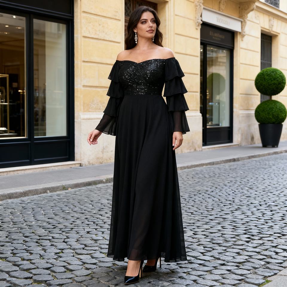 Premium Sequins Embroidery Polyester Elegant Evening Abaya Dress for Muslim Women Custom Wholesale