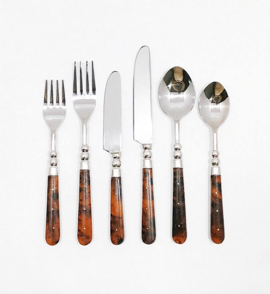 Shiny Silver Flatware Set With Tortoise Inlay Handle (Set of 6)