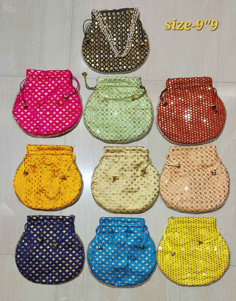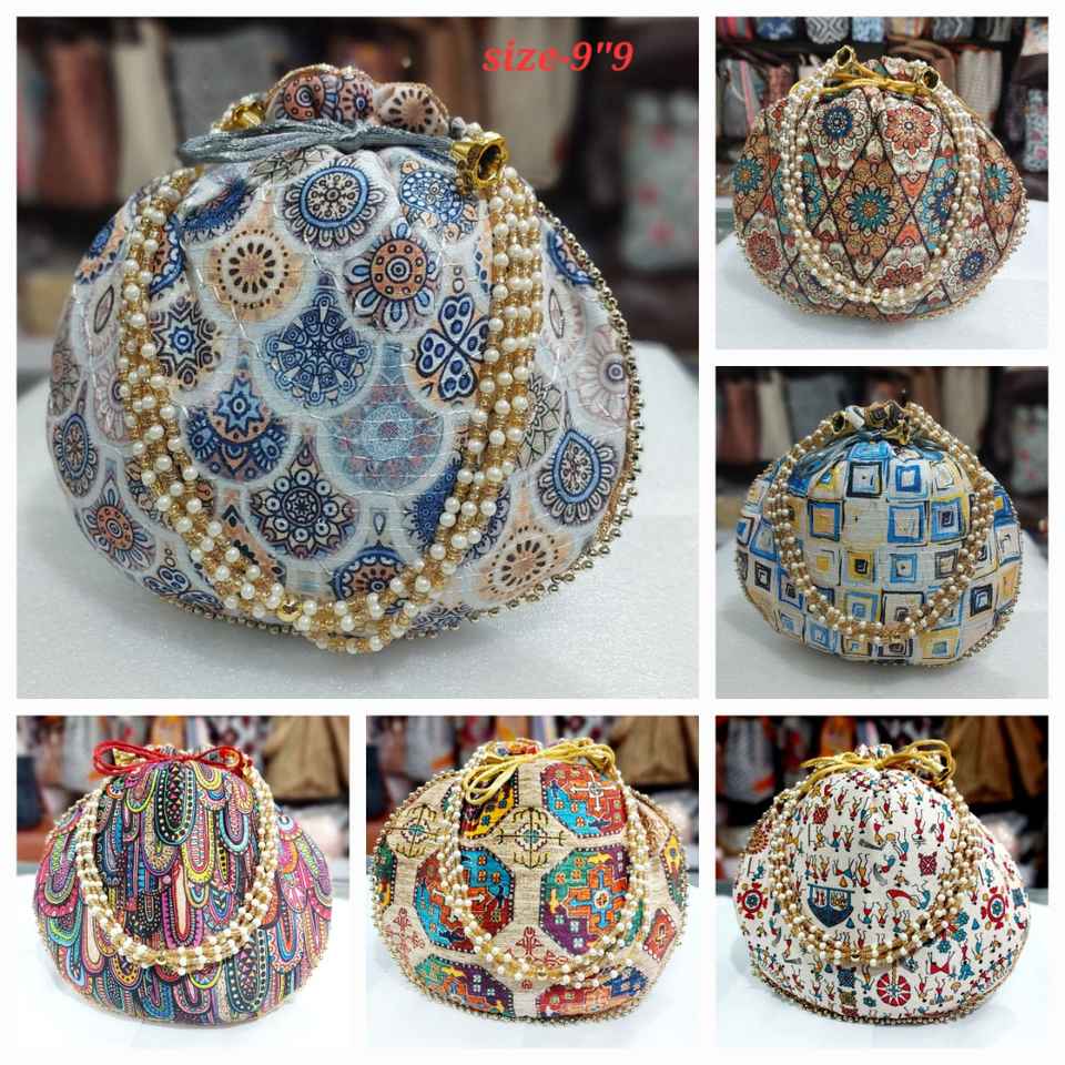 Premium Silk Half Moon Potli Bags with Tassel Pattern and Pearl Beaded Handle Fashion Ethnic Wedding Favour Bags