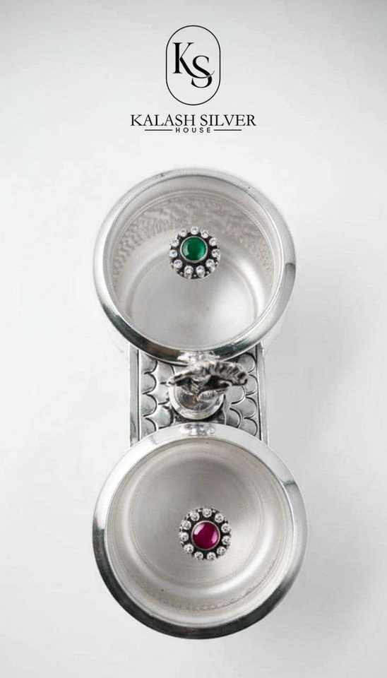 Premium Silver Decorative Storage Container Set with Lids Traditional Indian Silverware for Home Decor Gifting and Pooja Use