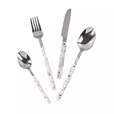 Premium Silver Metal Cutlery Set Stylish Stainless Steel Spoon Fork Knife Elegant Tableware for Dining Table Setup