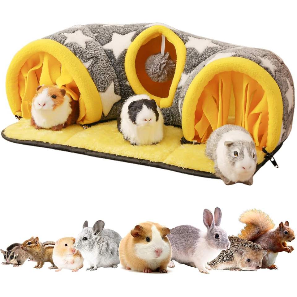 Premium Small Animal Hideaway Play Tube Toys Curtains Soft Sleeping Bed House for Dwarf Rabbits Guinea Pigs Other Pets Tunnel