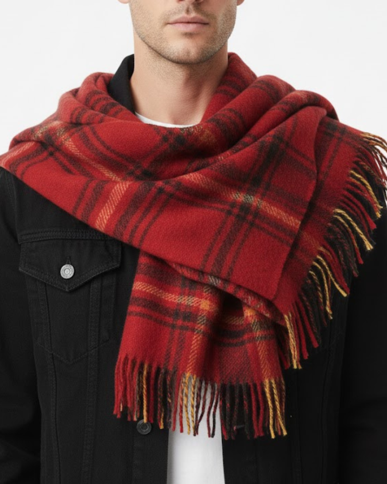 Premium Soft Cotton Red Color Plaid Pattern Scotch Blanket 150x200 cm Soft and Durable Woven Throw Scarf Shawl for Winter