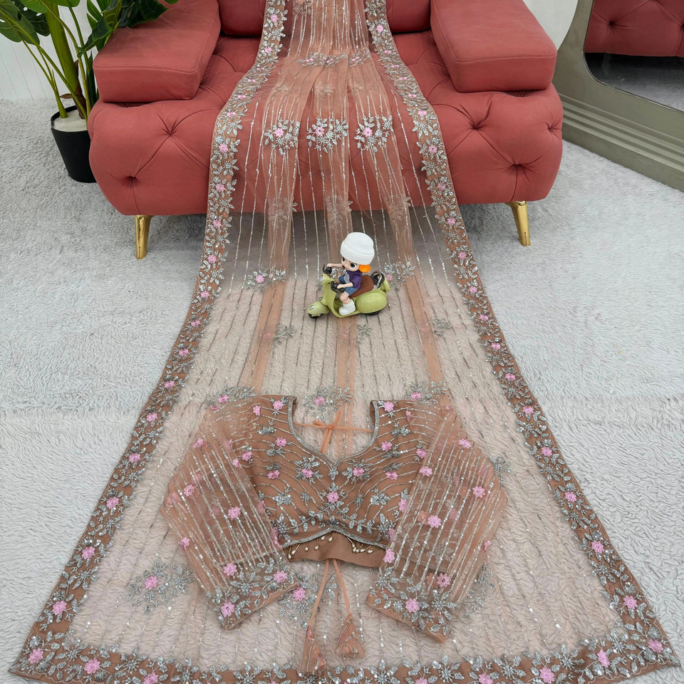 Work:Fancy Lace with Havy Latkan on Pallu ,Plain (With Fancy Lace)