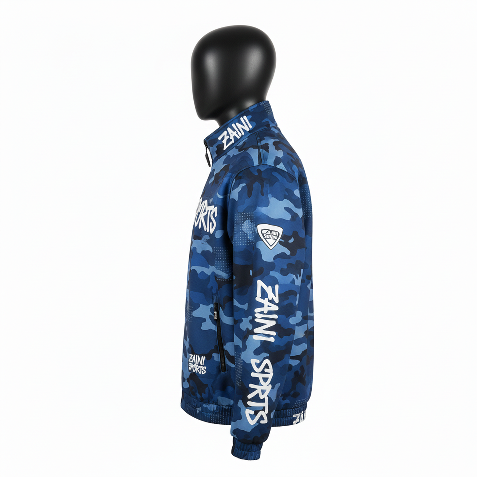 Premium Softshell Jacket Water Resistant Breathable Blue Camo Design Custom Logo Heat Transfer Printing softshell Jacket for man