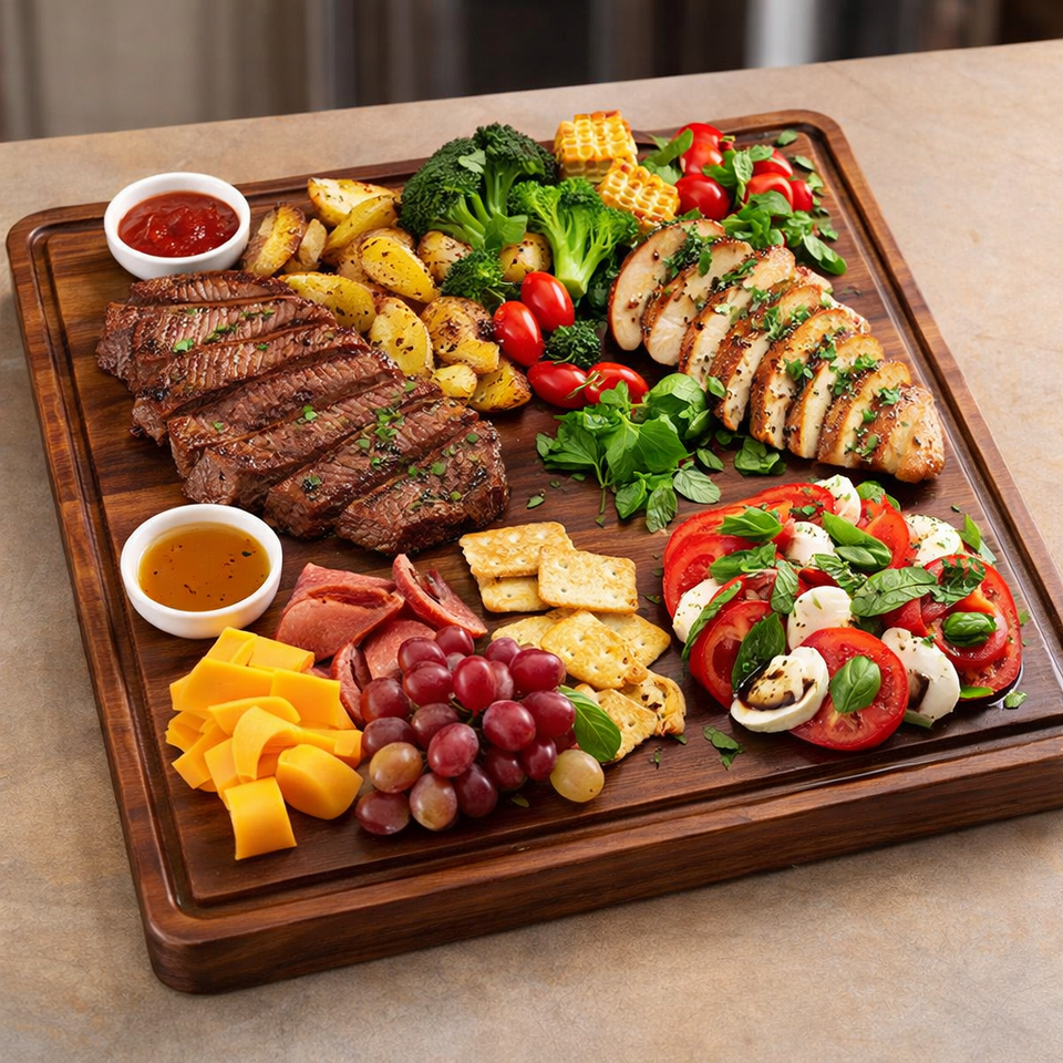 Premium Solid Wood Cutting Board – Square Dark Walnut Style, Thick Durable Chopping Board for Kitchen & Serving – OEM Custom