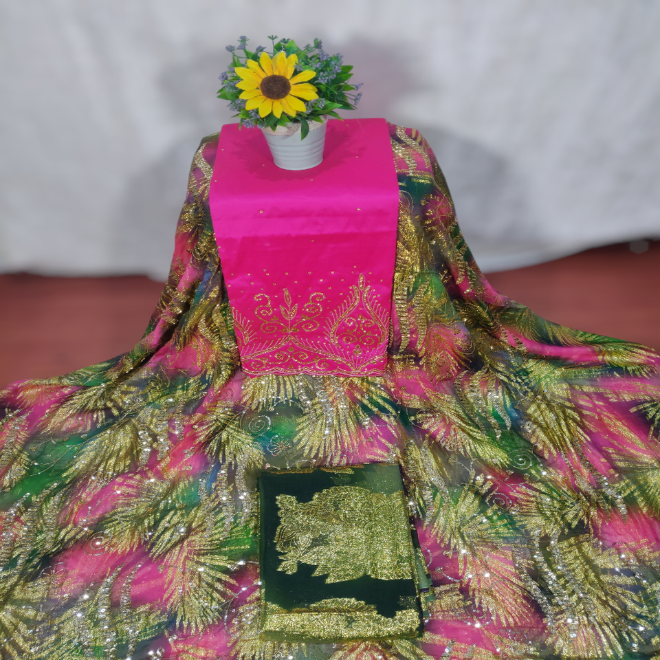 Premium Somali Fransawi Dirac Dress With Extreme Floral Design and Golden Stones for Special Occasions and Weddings