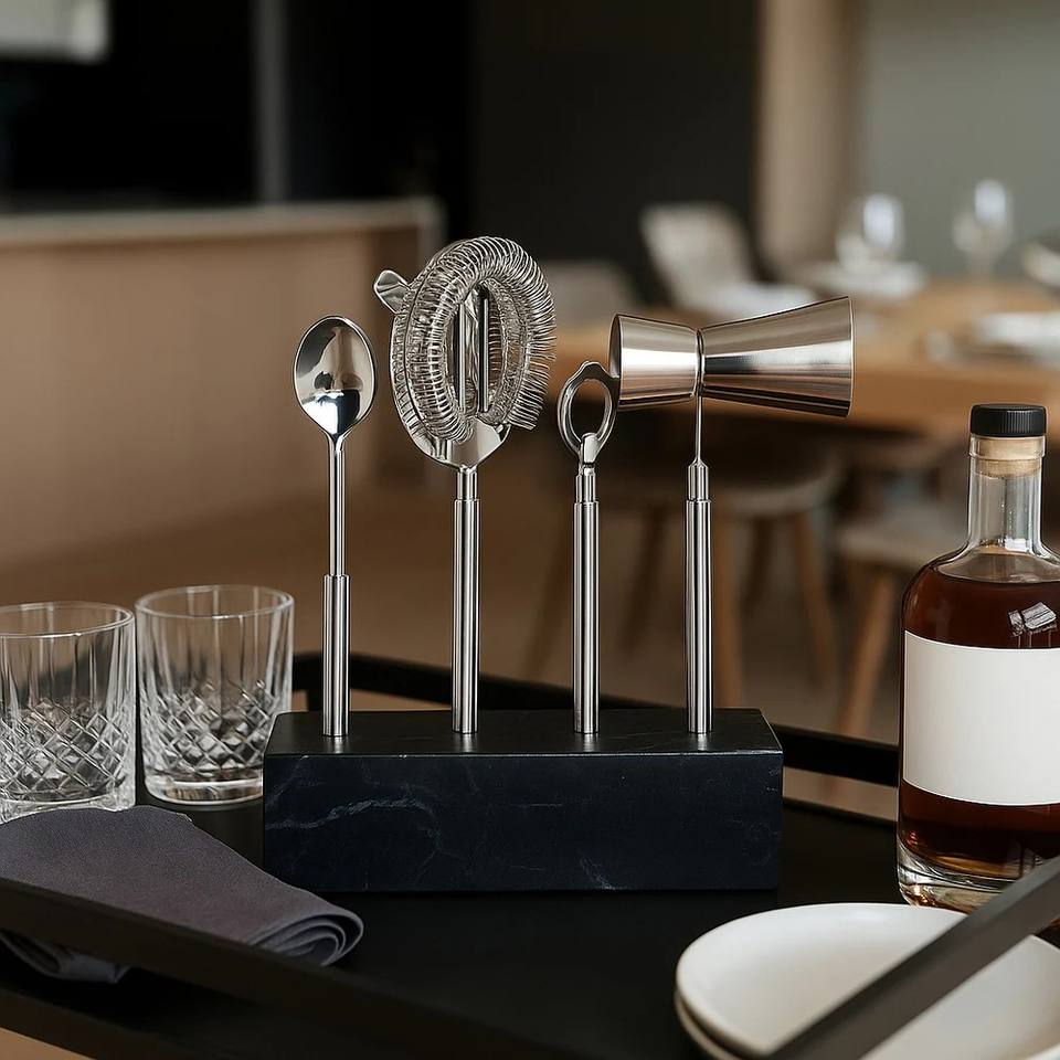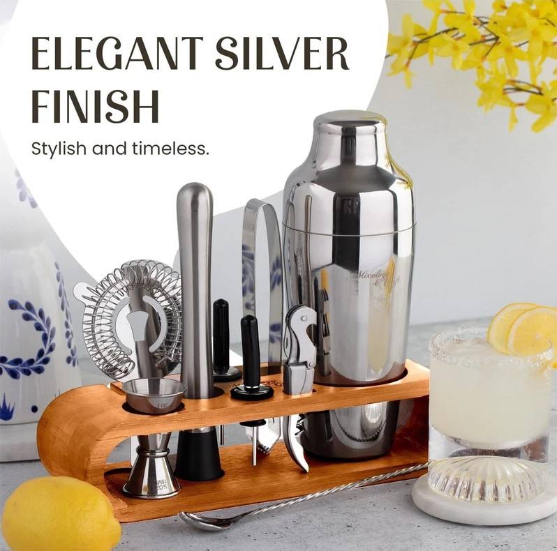 Premium Stainless Steel Bar Tool Set with Bamboo Stand Complete Cocktail Making Kit Durable Elegant Home Bar Essential
