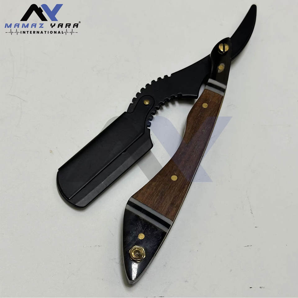 Premium Stainless Steel Barber Razors with Stylish Wooden Handle and PU Leather Storage Bag for Moustache & Beard Shaping