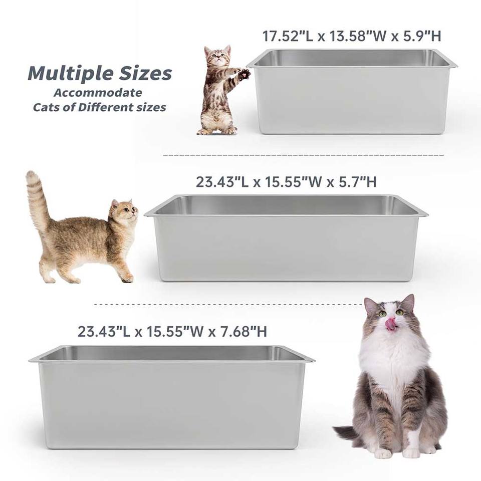 Premium Stainless Steel Cat Litter Box - Heavy Duty Metal Pan, High Sided Design for Kittens, Easy Clean & Odor Control/
