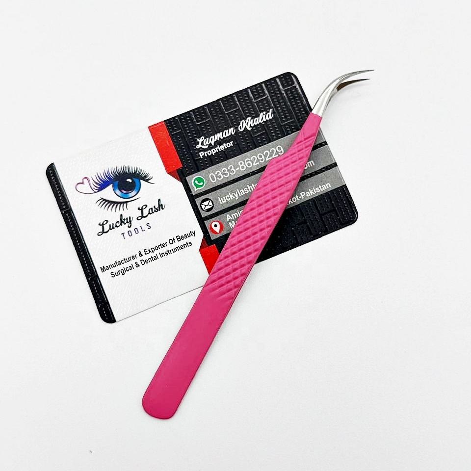 LUCKY LASH TOOLS Matte Color Stainless Steel Curved Shaped Eyelash Tweezers Comfort Grip Smooth Grip Sustainable Lash Tweezers