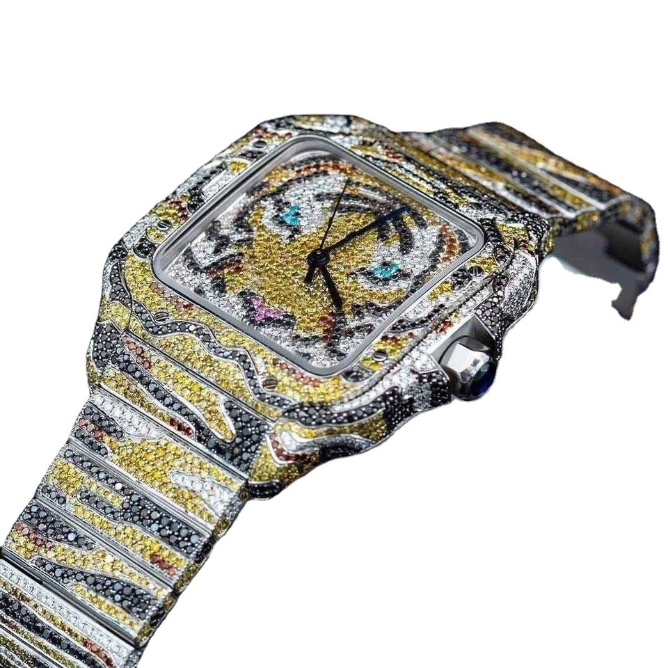 Premium Stainless Steel Moissanite Watch Multi Color VVS1 Full Pave Setting Mechanical Watches Pass Diamond Test Factory Price