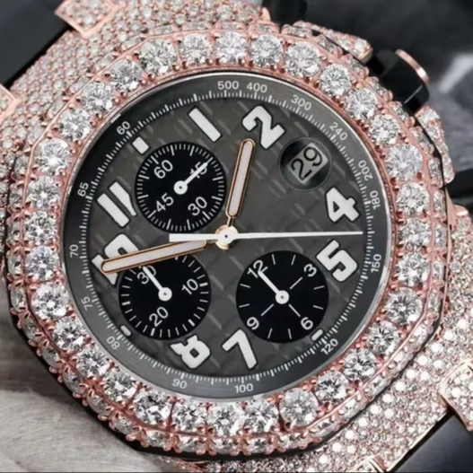 Premium Stainless Steel Quartz Moissanite Diamond Watch Glass for Men VVS Clarity Stones Sophisticated Modern Design