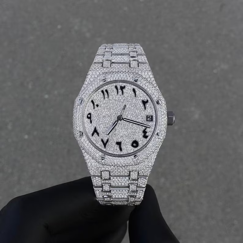 Premium Stainless Steel Quartz Moissanite Studded Diamond Watch Radiant Stones Design for High-End Fashion Everyday Elegance
