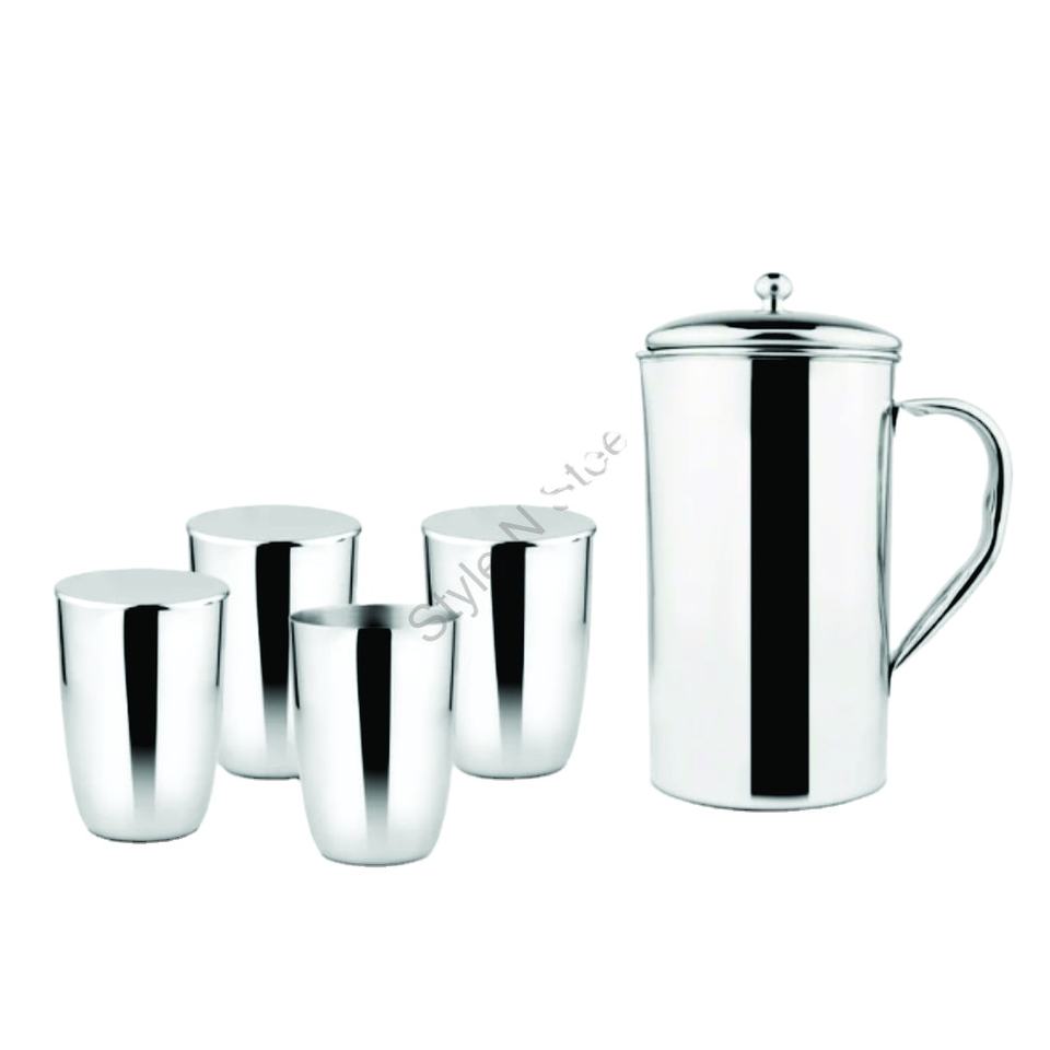 Premium Stainless Steel Water Jug with 4 Pcs Glass Set CLASSIC DESIGN Water Jug with Wire Handle at Wholesale