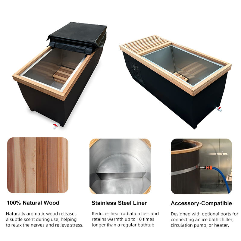 Premium Stainless Steel and Wooden Ice Bath Tub for Effective Cold Water Therapy and Sports Recovery Outdoors