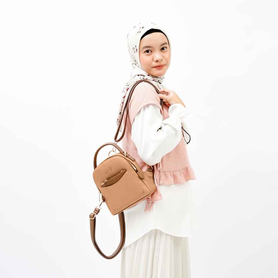 Premium Synthetic Leather Freya Bag Lady Solid Pattern Multi-functional Convertible Backpack Sling Bag Removable Coin Wallet