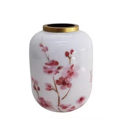 Premium Tall Metal Vases Luxurious Floral Printed Flower Holder with Golden Top Handcrafted Eye Catching Decorative Flower Pots