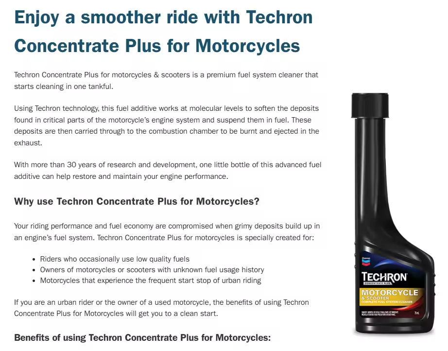 Premium 2KG Plastic Chevron Tectron Concentrate Plus for Motorcycles 75ML Fuel System Protection Engine Lubricants Cleaners Made