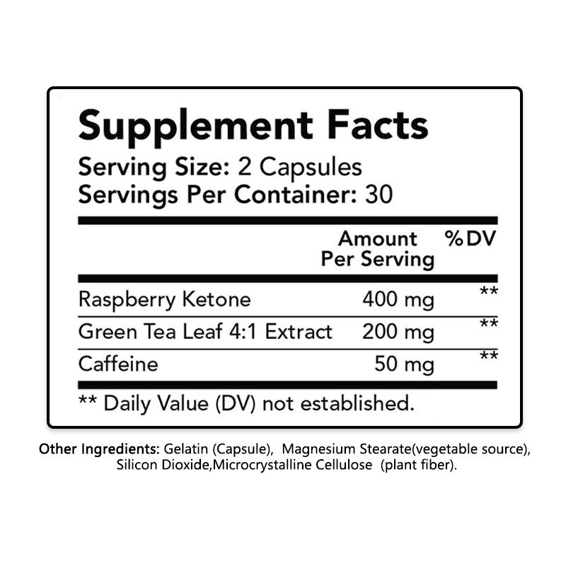 Main Ingredient:Raspberry Ketone, Green Tea Leaf Extract, Caffeine