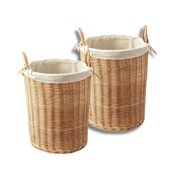 Premium Traditional Natural HANDWOVEN RATTAN BASKET with Handles Cotton Liner Hamper Basket Laundry Organizer Home Decor