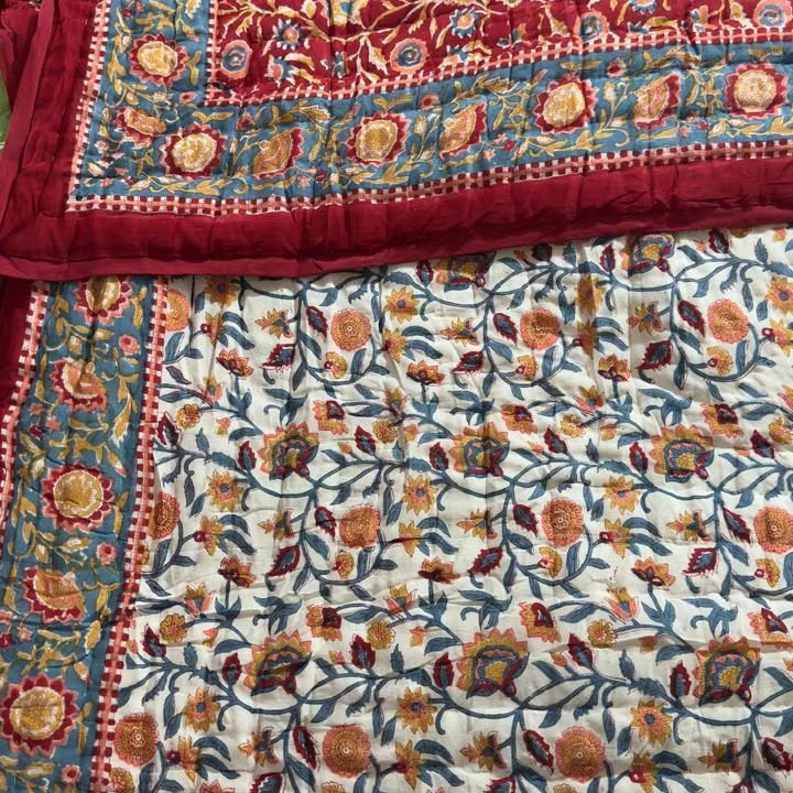 Premium Trending Design 100% Cotton BlockPrint Quilted Luxury Oversized Throw Blanket Soft Bed Coverlet CottonFabric Dressmaking