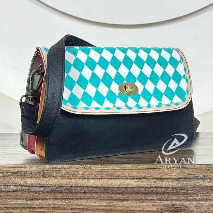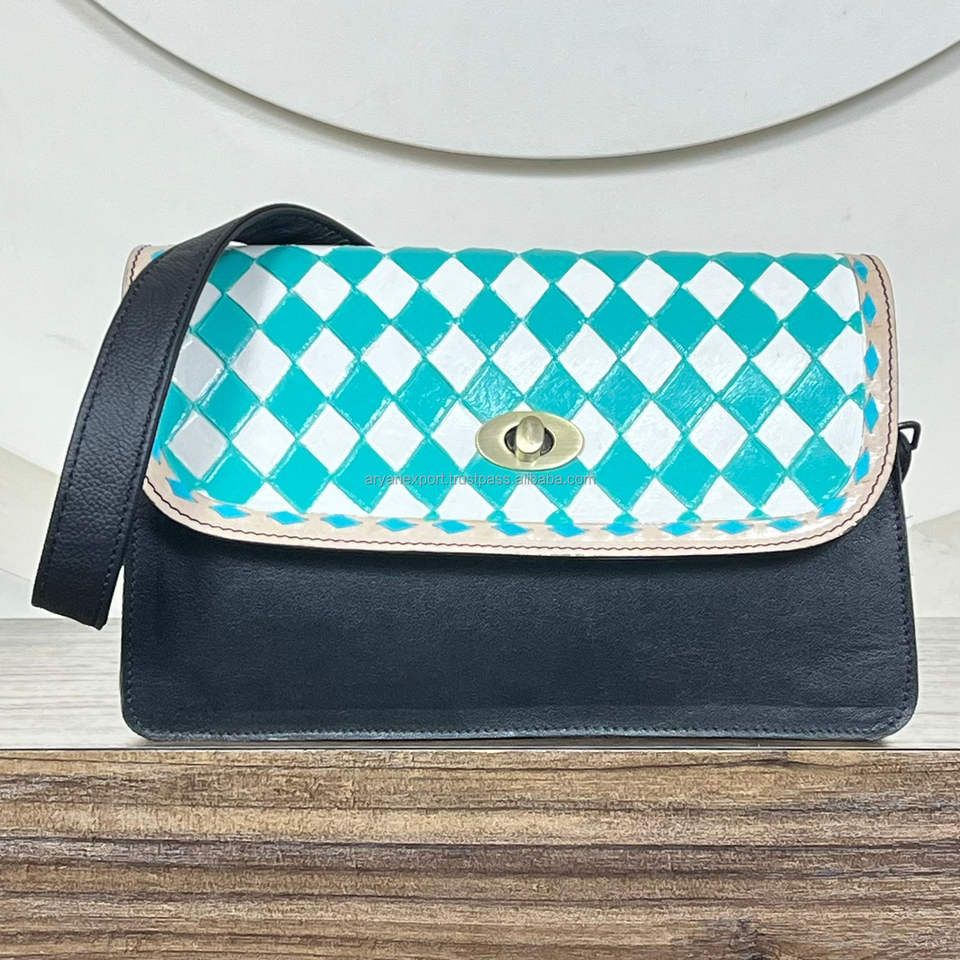 Product Name:Hand Tooled Cow Leather Checkered Handbag
