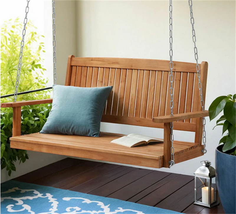 Premium Two-Seater Hanging Swing Chair Acacia Wooden Patio Bench for Outdoor Relaxation from Vietnamese manufacturer