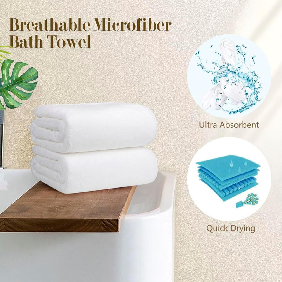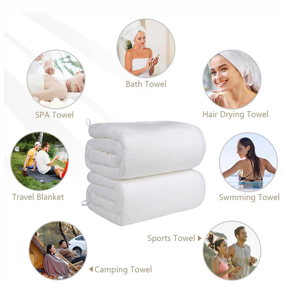 Premium Unisex Cotton Bath Towel Set in White Pink Blue for Adults Luxury Solid Logo Pattern for Bathroom or Hotel Use